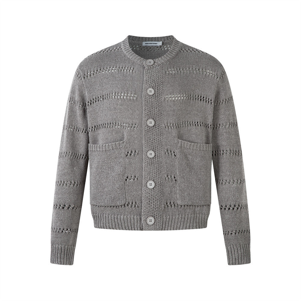 Simple Solid Color Knit Cardigan Minimalist Versatile Round Neck Long Sleeve Sweater